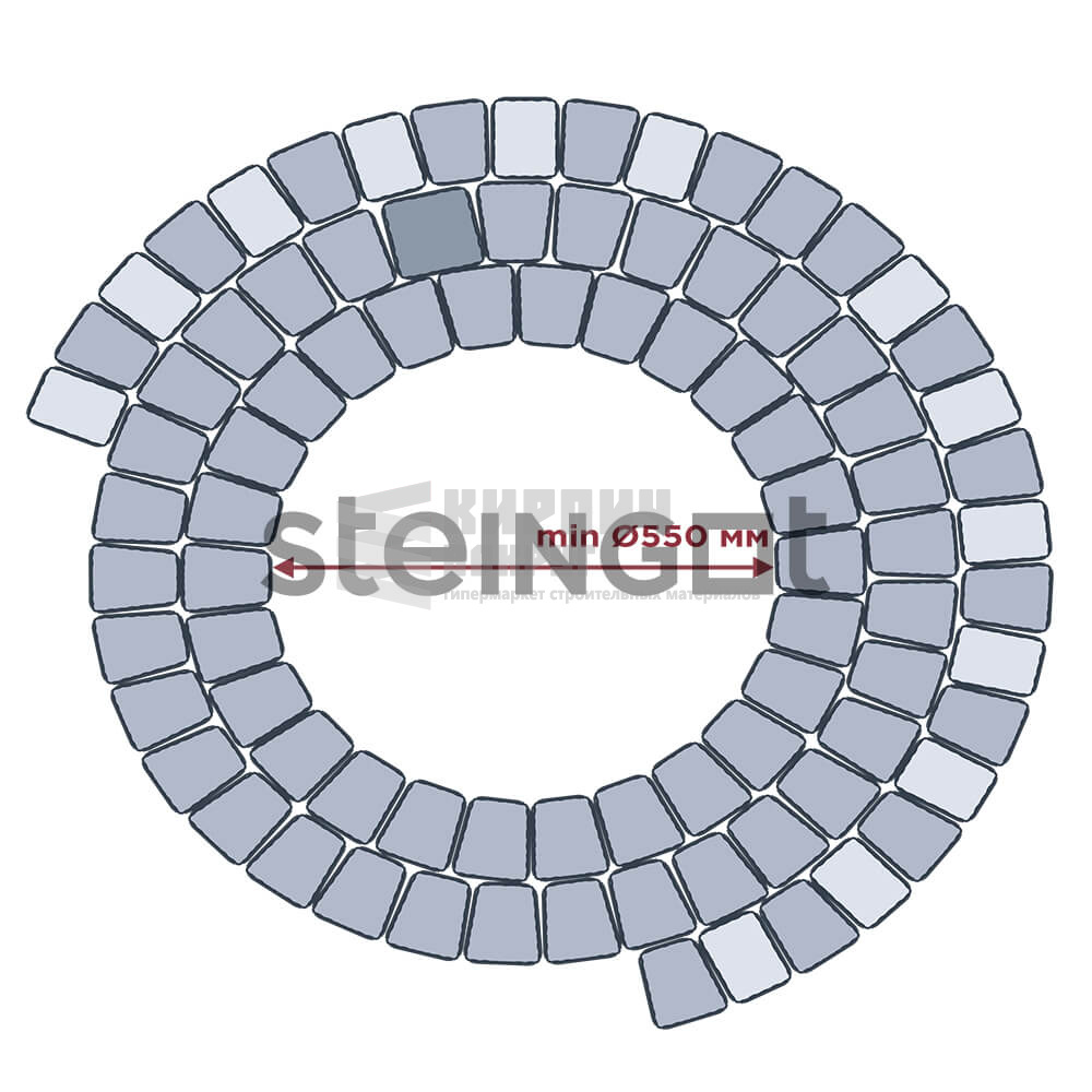 Необычная, необыкновенно гармоничная форма Классика Арко универсальна и незаменима для разделения зон на поверхности мощения, для использования вместо бордюров и для сложных радиусных узоров.