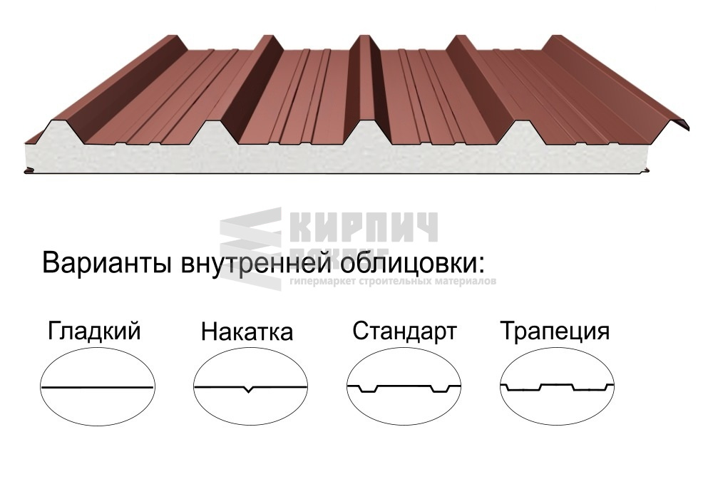 Строительный материал, имеющий трёхслойную структуру, состоящую из двух листов металла и слоя утеплителя между ними.