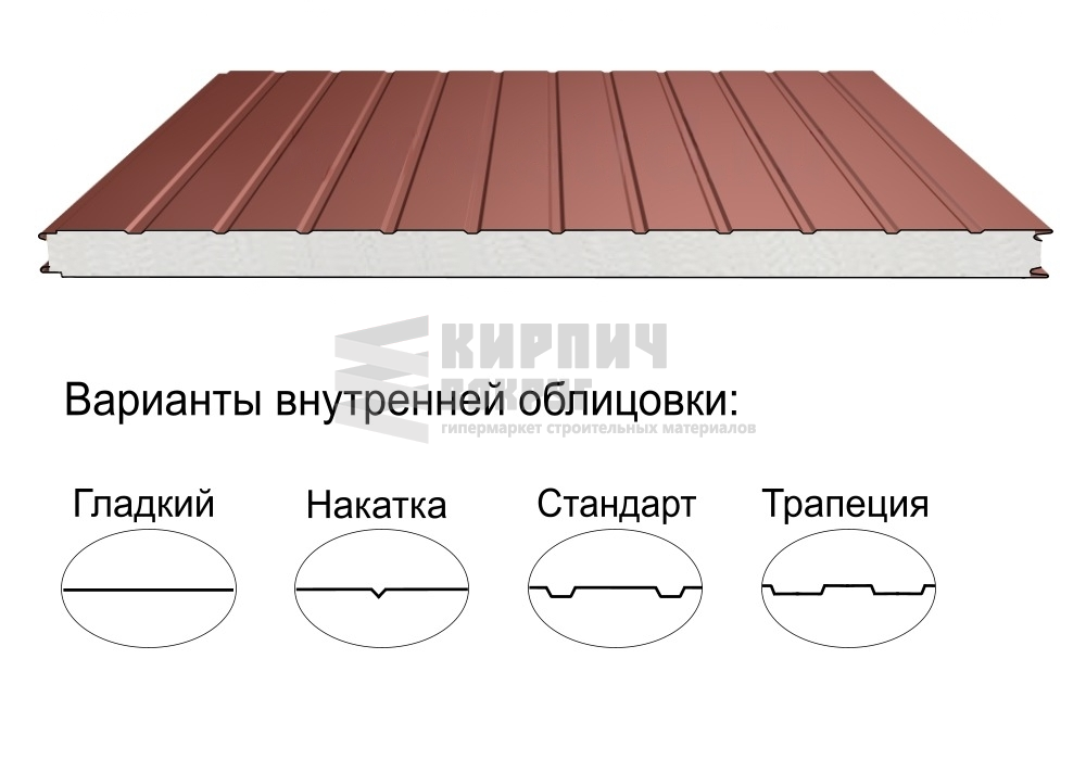 Строительный материал, имеющий трёхслойную структуру, состоящую из двух листов металла и слоя утеплителя между ними.